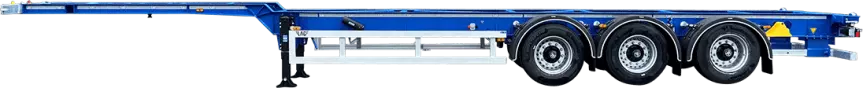 The LAG 40/45 ft gooseneck container chassis can carry both 40 ft and 45 ft containers. Simply swap the position of the front container arm and slide the extendable bumper in or out to switch between different container sizes. This model is also available in a lightweight version.
