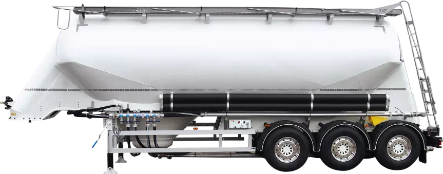 Like the smaller version, the 39 m³ non-tipping silo trailer consists of a single compartment with two cones connected to each other. With this larger version, you can easily transport up to ± 31 tonnes of powder products. The product is discharged from the rear at a pressure of 2 bar.